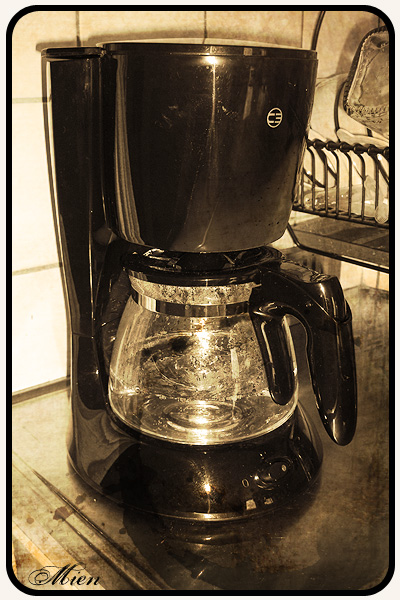 Jag grejade lite i köket nu på förmiddagen. Fyllde diskmaskinen och startade den, torkade bänkar, plockade undan lite småsaker och stod och tittade på kaffebryggaren. Ingen av oss dricker kaffe, vi håller oss till mängder med te i stället, men ibland har vi gäster som vill ha kaffe så vi investerade i en billig bryggare från SIBA.