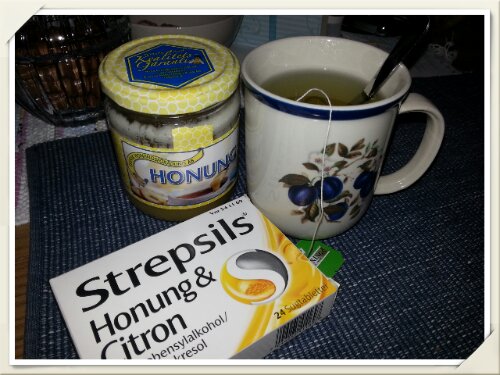 Är ganska deckad med feberfrossa. Dricker te så att det borde rinna ur öronen, men så länge det lindrar halsen så kokad det vatten här.