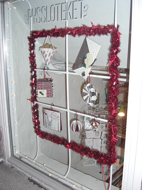 Vi har julskyltat Pyssloteket, och detta är mitt resultat. Lite längre ned hittar du ett par detaljbilder.