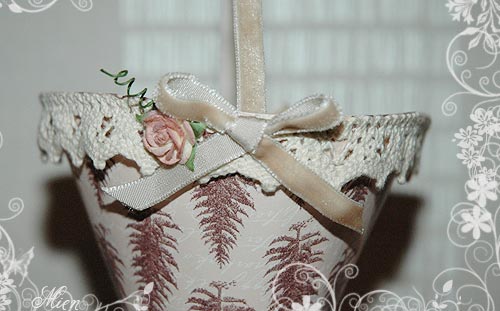 - Godiskon med spets och rosetter av sammetsband