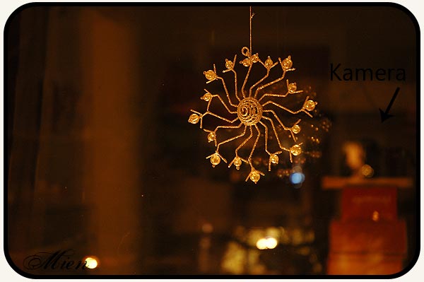 I går kväll tänkte jag fota en av snöstjärnorna som hänger i ett av våra fönster. Den glittrar så fint när staken under lyser på den. Hur skulle jag då gå tillväga? Att fota utan blixt var ganska givet, annars skulle jag inte få med den där fina känslan. När man fotar utan blixt i ett mörkt rum så behöver kameran lite mera tid på sig för att samla allt ljus den kan i bilden. Då står man där och småskakar på händerna, för det är svårt att hålla kameran blixt stilla. Resultatet blir en suddig bild.
