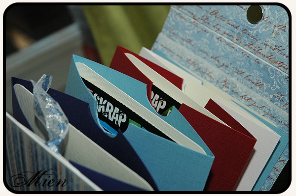 Insidan består av ett antal fickor vikta av cardstock och sedan sammanfogade längs med mitten. Varje ficka har sedan en tag med en lott fastsatt.