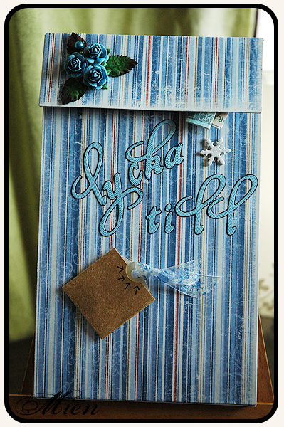Hennes sambo får en presentbok/minialbum, men lite godis i. Jag använde mig av papper från Maja Design julkollektion, Härliga Vinterdag och Hej mitt vinterland.