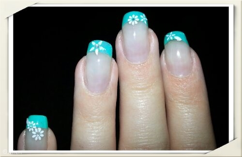 Jag började med två lager av Miami Blue från IsaDora (711). Den blå färgen riktigt lyser som en sommarhimmel. Jag funderade faktiskt på att bara ha enkel färg, men ångrade mig efter en stund.