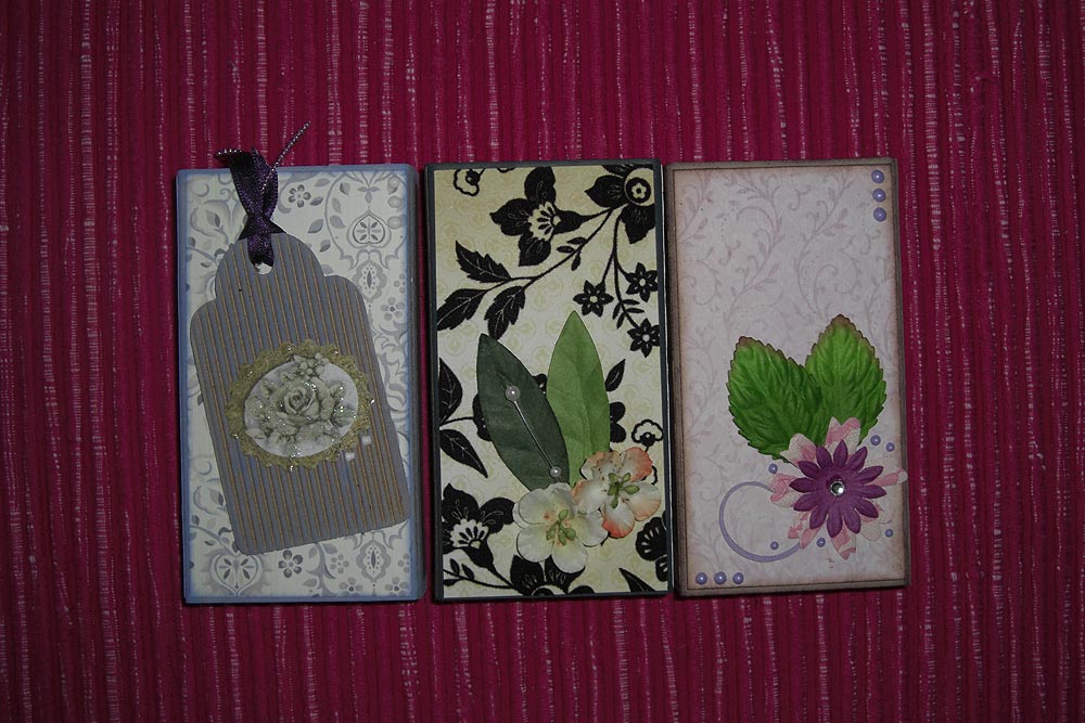 Tändsticksaskar i rolig form. Klädda med papper, band och blommor. Ca: 10 cm höga. Enhetspris (ett pris oavsett ask)